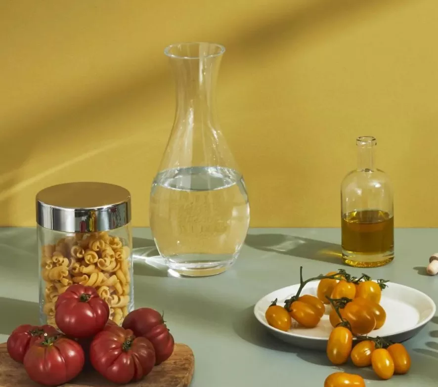 De Mami karaf van Alessi is ontworpen door Stefano Giovannoni. De karaf heeft een diameter van 12 centimeter, een hoogte van 26 centimeter en een inhoud van 100 centiliter. De kan is gemaakt van kristallijn glas en is vaatwasmachinebestendig.