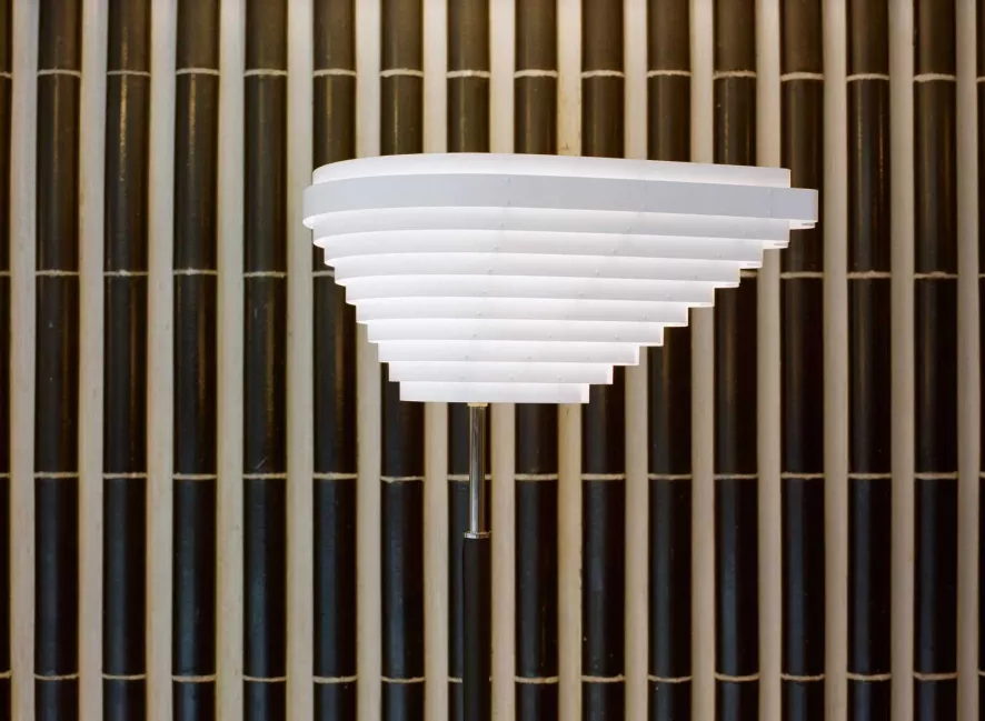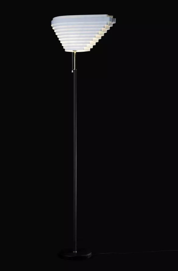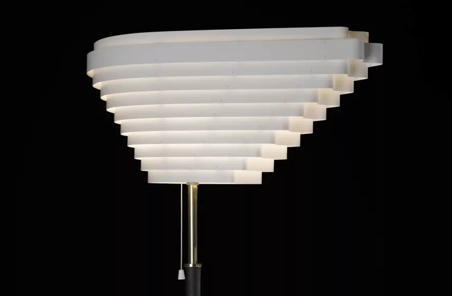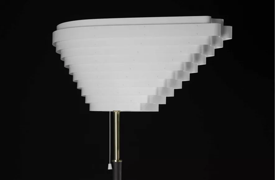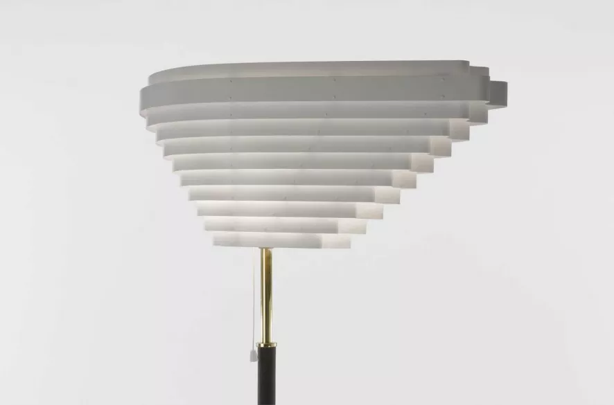 De Artek A805 Angel Wing vloerlamp is ontworpen door Alvar Aalto.