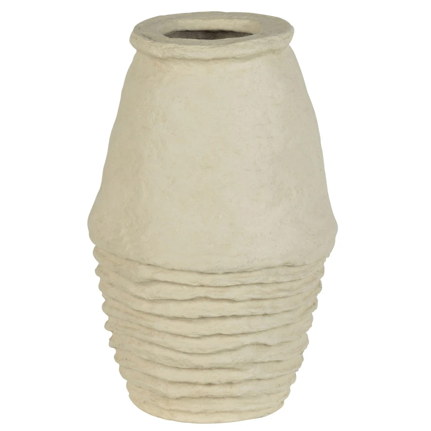 De Delos vaas papier mache heeft een hoogte van 45 centimeter en een diameter van 30 centimeter. De vaas is geproduceerd in India en is gemaakt van papier mache.