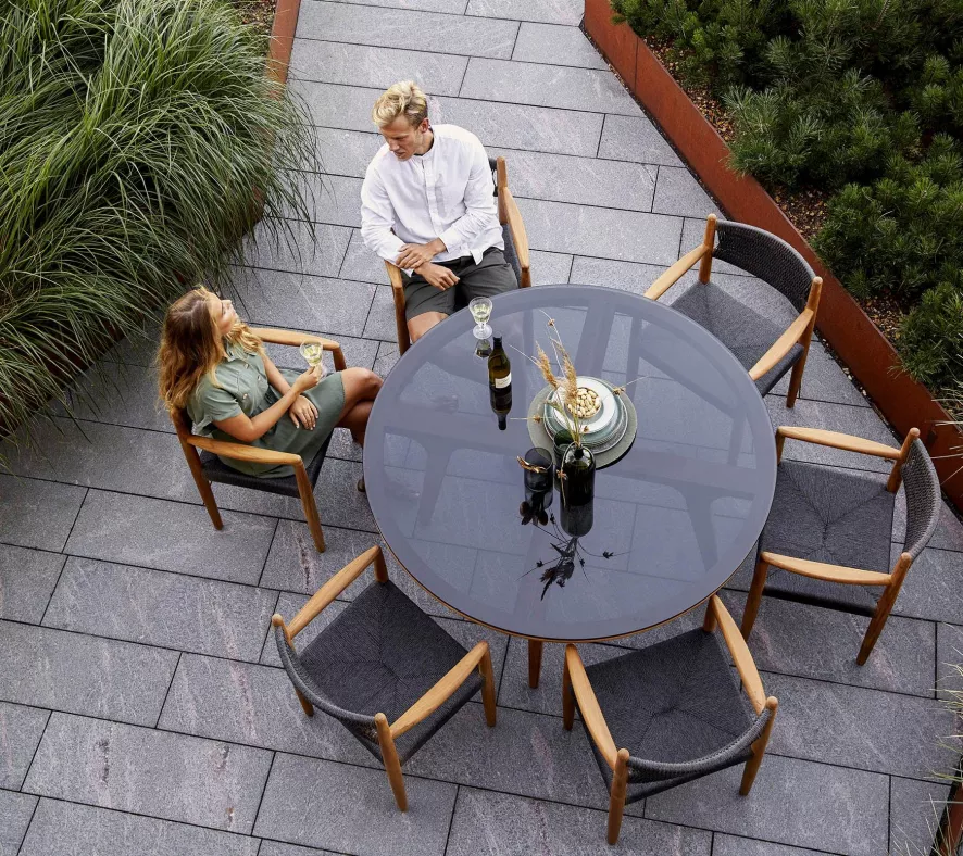 De Aspect tuintafel 144 rond van Cane-line heeft een diameter van 144 centimeter, een hoogte van 74 centimeter en een gewicht van 32 kilogram. De tafel is gemaakt van teakhout en voorzien van een keramisch of glazen tafelblad. Het tafelblad is verkrijgbaar in verschillende kleuren. Het teak is goedgekeurd en gecultiveerd volgens het SVLK-certificeringssysteem. Na verloop van tijd kan het hout zijn natuurlijke kleur verliezen. Om dit te voorkomen kan het teak behandeld worden met sealer.