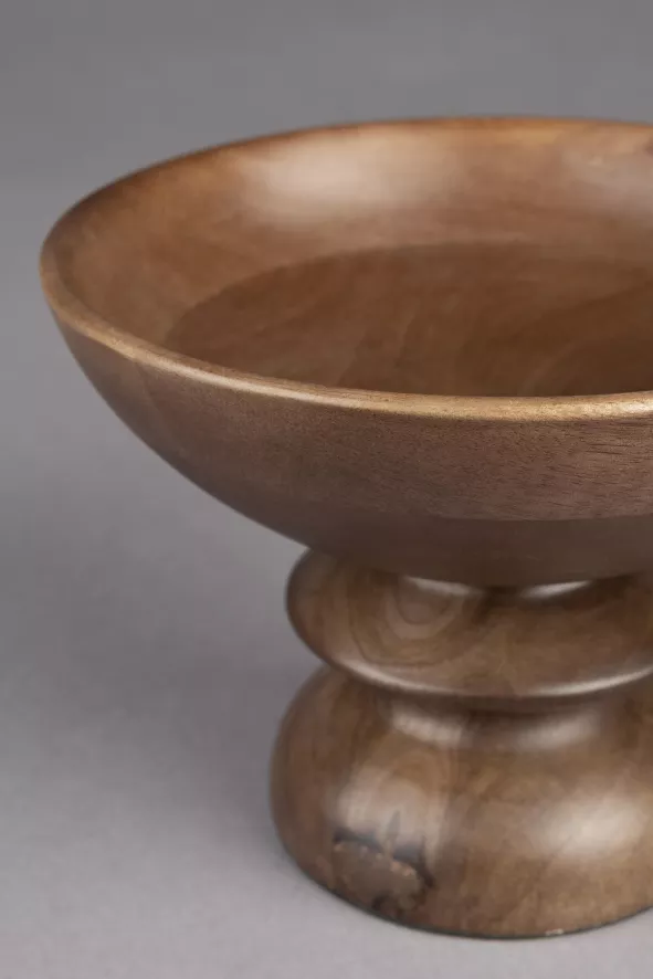 De Gwen schaal medium van Dutchbone heeft een diameter van 19 centimeter, een hoogte van 14 centimeter en een gewicht van 0,52 kilogram. De schaal is gemaakt van mangohout en heeft een ronde vorm.