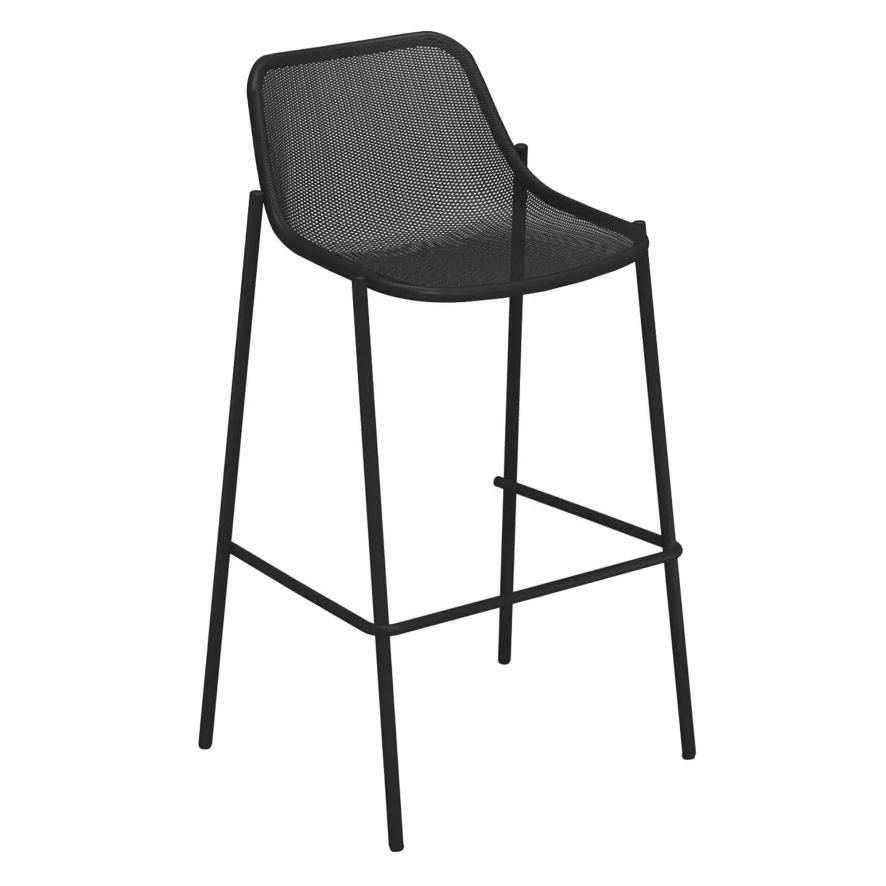 De Round barkruk van EMU is ontworpen door Christophe Pillet. De barkruk heeft een breedte van 58 centimeter, een diepte van 52 centimeter en een hoogte van 101 centimeter. De zithoogte bedraagt 75 centimeter. De barkruk is gemaakt van staal, afgewerkt met een kataforese- en poedercoatbehandeling, en weegt 6,6 kilogram. Het maximale draaggewicht van de barkruk bedraagt 200 kilogram. Je kan tot vier Round barkrukken stapelen. EMU raadt aan de barkruk in de wintermaanden beschut op te bergen.