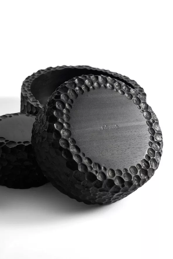 De drie kommen zijn met de hand gemaakt van zwart gebeitst, massief mahoniehout en zijn met een transparante lak op waterbasis afgewerkt. De schalen hebben een gewicht van 2,05 kilogram. De Chopped kom set van 3 van Ethnicraft is alleen geschikt voor droge materialen en etenswaren en mag alleen binnenshuis gebruikt worden.