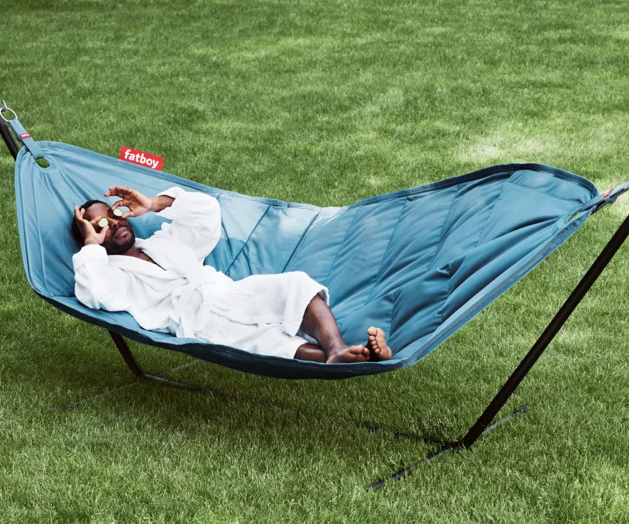 De Fatboy Headdemock hangmat met standaard is 330 centimeter lang, 138 centimeter breed en 110 centimeter hoog. Plaats genoeg dus. Het frame is gemaakt van metaal en rubber, de stof van de hangmat is van waterafstotend en UV-resistent polyester. De luxe hangmat met standaard is verkrijgbaar in verschillende kleuren. Het maximaal draagvermogen van de hangmat is 150 kilogram. Met de bijgeleverde draagtas kun je de Fatboy hangmat eenvoudig vervoeren of opbergen. Het gewicht van de hangmat is 28 kilogram. Je kunt de Fatboy Headdemock hangmat eenvoudig reinigen met lauw water en neutrale zeep. Fatboy raadt aan om de hangmat zo te behandelen als een tuinkussen en hem op te bergen als het regent.
