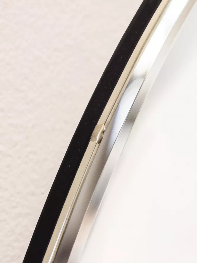 Let op: het metalen frame van de spiegel heeft twee lasmarkeringen op de punten waar het metaal aan elkaar is gesmolten.