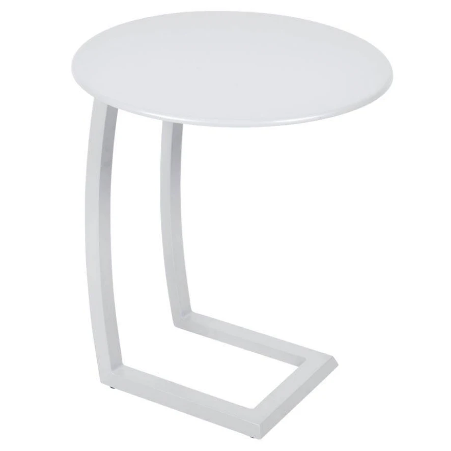 De Alizé Offset bijzettafel van Fermob heeft een diameter van 48 centimeter en een hoogte van 55,4 centimeter. Zowel het tafelblad als het frame zijn gemaakt van aluminium, afgewerkt met een poedercoating. Het bijzettafeltje is verkrijgbaar in verschillende kleuren en weegt 3 kilogram.