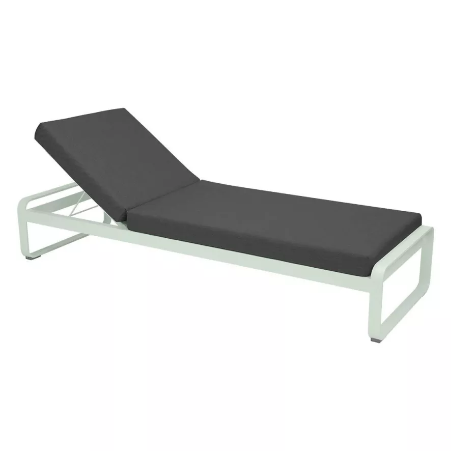 Het Bellevie ligbed kussen antraciet van Fermob is ontworpen door Pagnon en Pelhaître. Het ligbed heeft en lengte van 200 centimeter, een breedte van 74,5 centimeter en een hoogte van 38,5 centimeter tot 74,5 centimeter (de rugleuning is in hoogte verstelbaar). De lighoogte bedraagt 38,5 centimeter. Het ligbed frame is gemaakt van aluminium, afgewerkt met een poedercoating en het kussen is bekleed met een Sunbrella stof. Deze is waterafstotend, uv-bestendig en anti-vlek en -schimmel. Daarnaast droogt het kussen snel en is hij resistent tegen scheuren. Je kan de kussenhoes reinigen op een dertig graden was in de wasmachine. Je vindt het ligbed in verschillende kleuren.