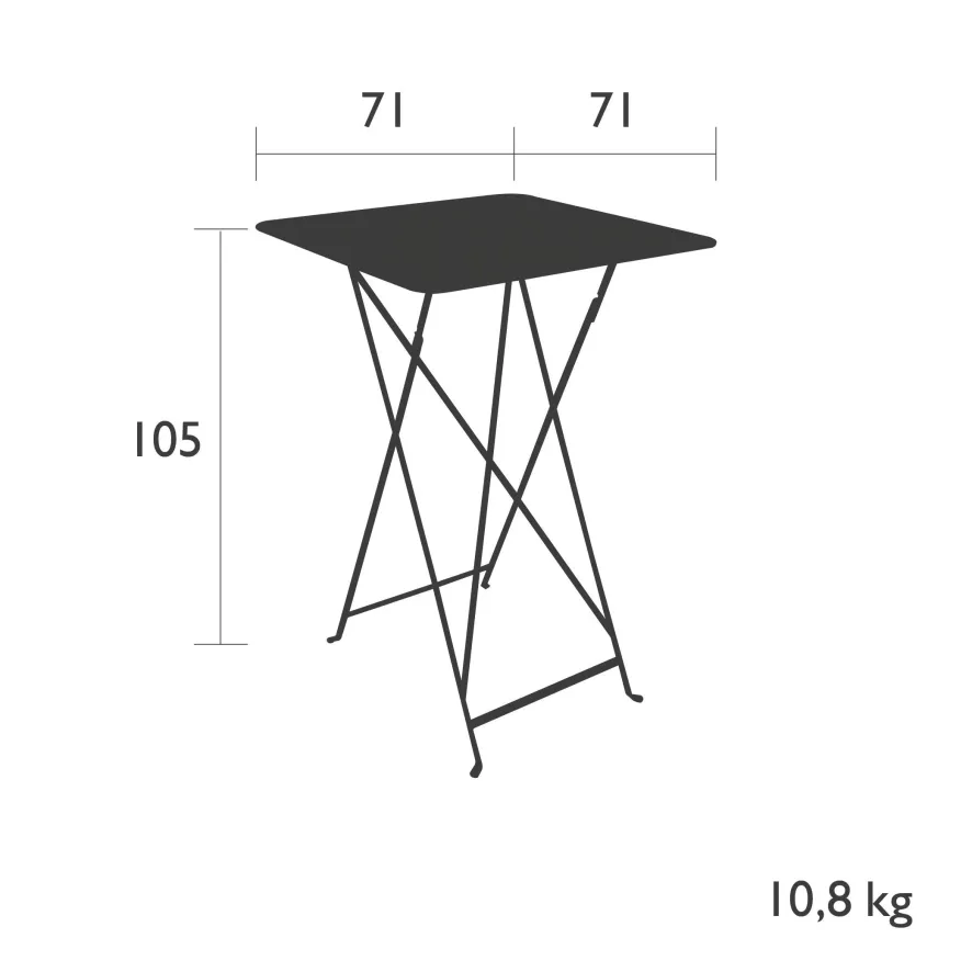 De Fermob Bistro statafel 71×71 is zoals de naam al aangeeft 71 centimeter breed, 71 centimeter diep en 105 centimeter hoog. De statafel weegt 10,8 kilogram en is gemaakt van staal. De statafel heeft een ‘High Protection Treatment’ zodat de tafel buiten gebruikt kan worden. Daarnaast is de tafel weersbestendig en is ook bestand tegen UV-stralen. De Fermob Bistro statafel 71×71 is verkrijgbaar in diverse kleuren.