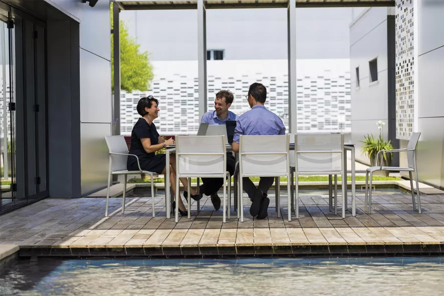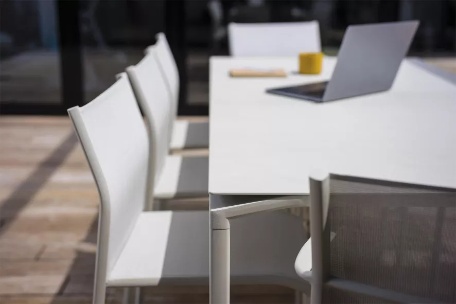 Dit is de Cadiz tuinstoel van Fermob. Het frame van de stoel is gemaakt van aluminium en wordt gepoedercoat met een anti-UV laag. De zitting en rug wordt uitgevoerd met Batyline materiaal, gemaakt van een sterke polyester vezel en bewerkt met een extra laag PVC. Deze stof rekt niet uit, is UV-resistent en wordt in het zonnetje niet ondragelijk heet. Daarnaast is Batyline vlek- en schimmelbestendig en hypoallergeen. Ook niet onbelangrijk, de stof is schoon te maken met wat water en een sopje. De hoogte van de stoel is 85.8 centimeter, de lengte is 49.6 centimeter en de breedte is 55.4 centimeter. De stoelen zijn stapelbaar tot wel 10 stoelen en er zit ook nog eens vijf jaar garantie op. Weet jij al welke van de vele verschillende kleuren het mooiste staat bij jou in de tuin?