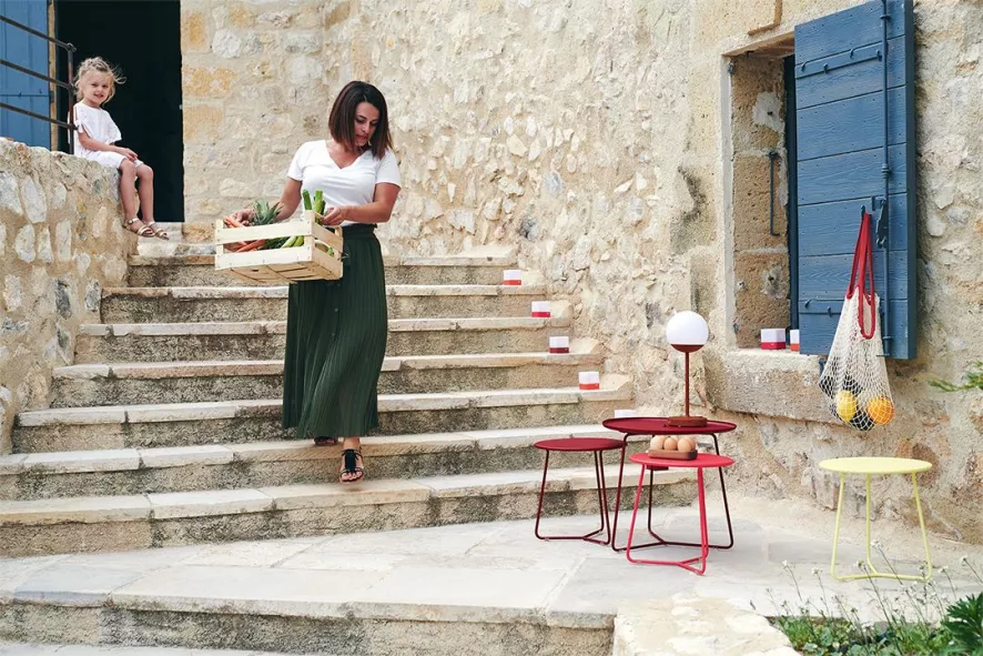 De Cocotte bijzettafel small van Fermob heeft een diameter van 34,5 centimeter en is 36 centimeter hoog. De bijzettafel weegt 2 kilogram en heeft een stalen frame. De bijzettafel heeft een verwijderbare aluminium tafelblad. De Cocotte bijzettafel small is behandeld met een High Protection Treatment voor buitengebruik en heeft een anti-UV poedercoating. Combineer deze small versie met de Cocotte bijzettafel large.