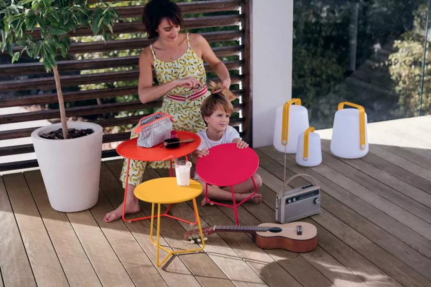 De Cocotte bijzettafel small van Fermob heeft een diameter van 34,5 centimeter en is 36 centimeter hoog. De bijzettafel weegt 2 kilogram en heeft een stalen frame. De bijzettafel heeft een verwijderbare aluminium tafelblad. De Cocotte bijzettafel small is behandeld met een High Protection Treatment voor buitengebruik en heeft een anti-UV poedercoating. Combineer deze small versie met de Cocotte bijzettafel large.