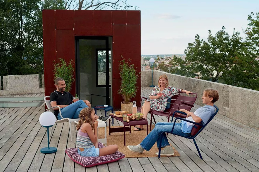 De Fermob Luxembourg fauteuil duo is ontworpen door Frédéric Sofia.