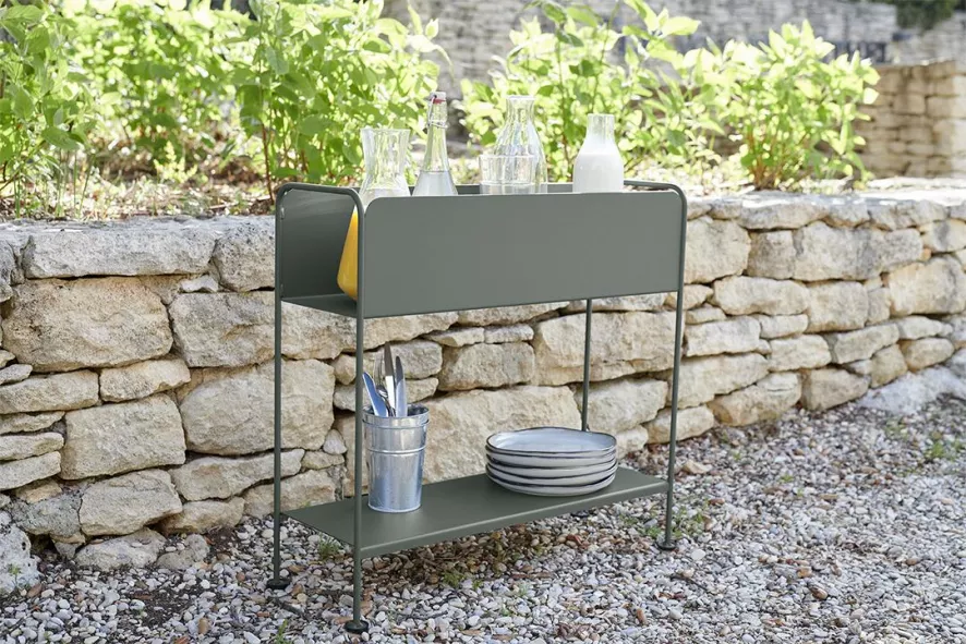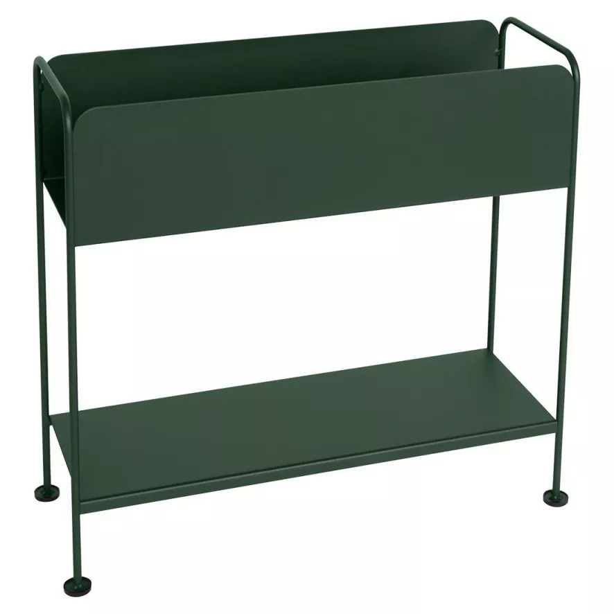 De Picolino plantenbak van Fermob is 66 centimeter breed, 23 centimeter diep en 63 centimeter hoog. De plantenbak met plank eronder heeft een gewicht van 9,7 kilogram. Het frame is gemaakt van staaldraad en is voorzien van een plaatstalen opbergbak en plank. De Picolino plantenbak is verkrijgbaar in diverse kleuren.