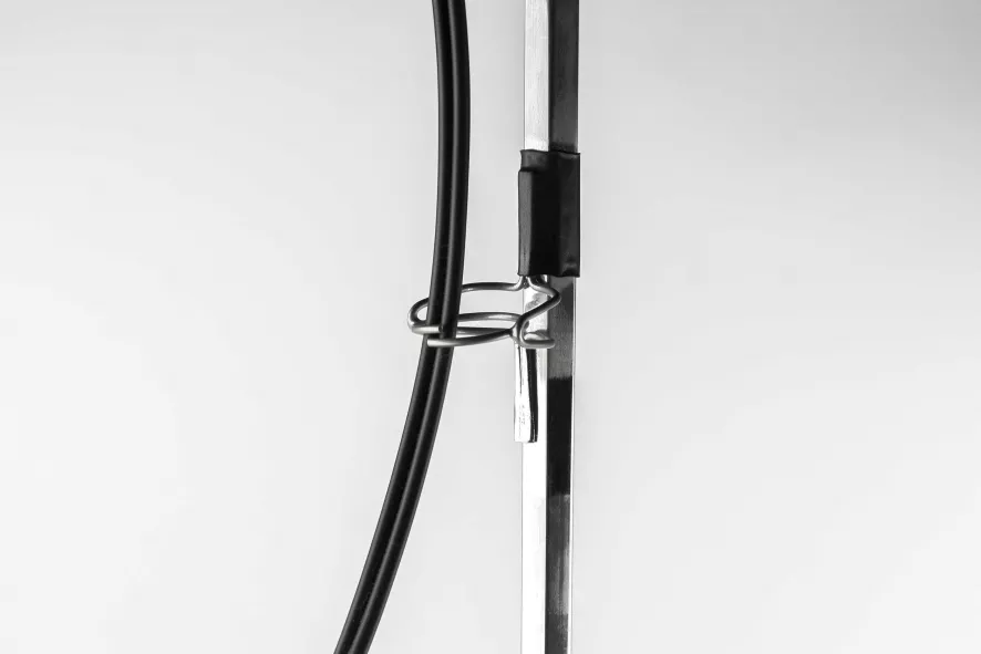 De Flos Toio vloerlamp is 21 centimeter breed en heeft een verstelbare hoogte van 158 centimeter tot 195 centimeter. De kap heeft een diameter van 17 centimeter. Het snoer heeft een lengte van 247 centimeter. De vloerlamp is gemaakt van metaal, en verkrijgbaar is de kleuren rood, wit en zwart. Aan het snoer zit een schakelaar met dimmer. Deze vloerlamp wordt inclusief lichtbron geleverd.