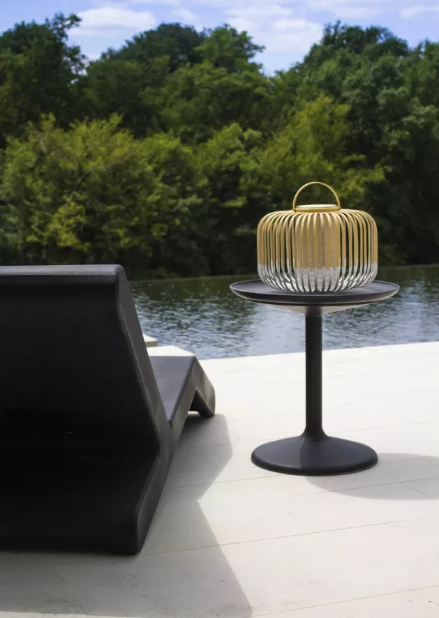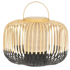 Dit is de Take A Way draagbare tafellamp S van Forestier. De lamp is oplaadbaar, dus je kunt hem overal mee naar toe nemen! De Take A Way S heeft een hoogte van 33 centimeter, een lengte van 35 centimeter en een breedte van 35 centimeter. De lamp is gemaakt van bamboe en wordt geleverd inclusief LED lichtbron met een maximaal wattage van 2,5. De lichtbron is dimbaar van 0% tot 100% en heeft drie vooraf ingestelde standen. De lamp heeft een kleurtemperatuur van 3000K en een lichtopbrengst van 290 Lumen. De Take A Way wordt geleverd met een USB kabel waarmee de lamp binnen 4 uur is opgeladen en zo’n 6 uur mee gaat. Ook heeft de lamp een timer. De Take A Way lampen zijn er in drie maten (XS, S en M) en twee kleuren: zwart en wit.
