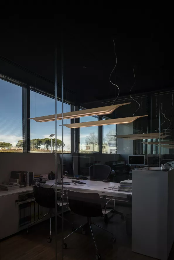 De Troag media hanglamp is 185 centimeter breed en is 8,5 centimeter hoog. De hanglamp is voorzien van een geïntegreerde LED-module, met een wattage van 46 en een lichtopbrengst van 5900 lumen. De kleurtemperatuur van de lamp is 3000 Kelvin. De lamp is met de Casambi app dimbaar via Bluetooth. Hierdoor is geen bedrading, schakelaar of internetverbinding nodig om de lamp te bedienen. Installeer de lichtbron, match deze in de app en bedien de lamp via je smartphone, smartwatch of tablet. Met het Foscarini MyLight systeem heb je een vloeiende dimtechniek die niet zoemt of hapert. Het systeem werkt gemakkelijk en is gebruiksvriendelijk. De Troag media hanglamp is gemaakt van gebogen multiplex en PMMA. De IP-waarde is 20, waardoor de lamp slechts stofdicht is en daardoor geschikt voor binnen gebruik.