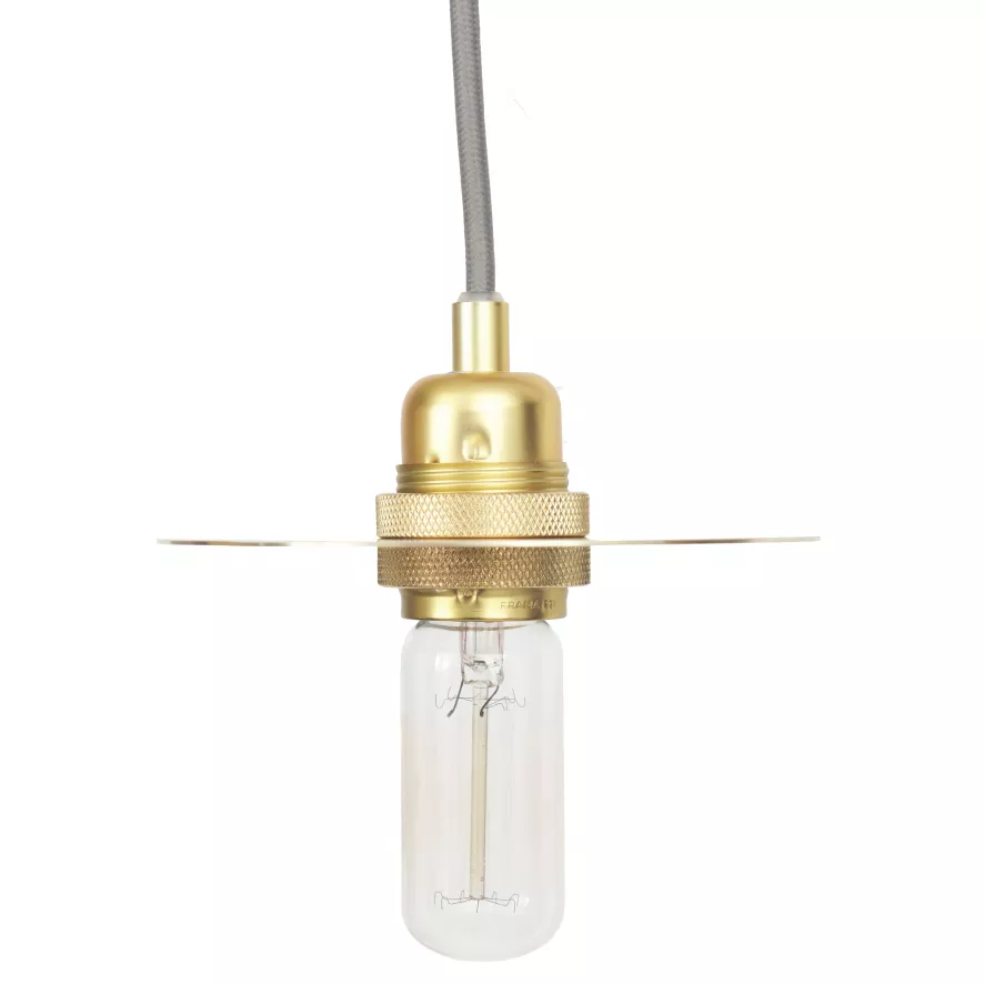 De Circle Shade hanglamp small heeft een diameter van 15 centimeter en is 3 centimeter hoog. De lamp heeft een E27 fitting, geschikt voor een lichtbron met een maximaal wattage van 60. Deze lichtbron wordt niet meegeleverd. Het zwarte textiele koord heeft een lengte van 3 meter. Het materiaal en tevens de kleur van de lamp is messing. De lamp wordt zonder plafondkap geleverd.
