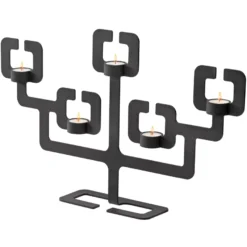 De Functionals Bonsai 5 kandelaar heeft een bijzonder mooi design. Hij is verkrijgbaar in de kleur zwart en geschikt voor in de eet- of woonkamer. De Bonsai 5 is 60,5 centimeter breed, 9,5 centimeter diep en 37 centimeter hoog. Hij is gemaakt van een metaalsoort, namelijk: ijzer. Hierdoor is de kandelaar eenvoudig afwasbaar.