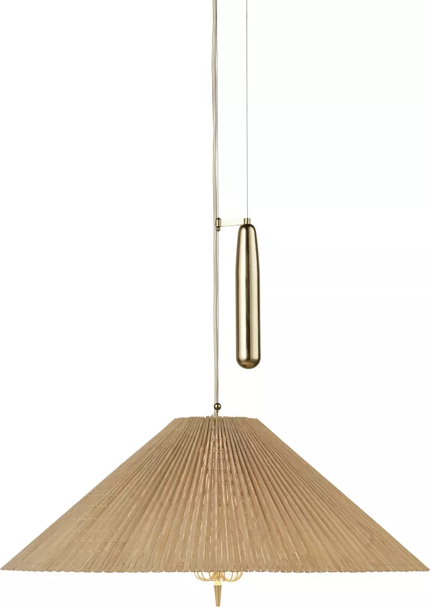 De A1972 hanglamp bamboo van Gubi heeft een diameter van 60 centimeter en een hoogte van 27 centimeter. De lamp heeft een basis van messing en een lampenkap van onbehandeld bamboe. De benodigde lichtbron voor deze hanglamp wordt niet meegeleverd. Voor deze hanglamp heb je twee led lichtbronnen met een E27 fitting van maximaal 10 Watt en een lichtopbrengst van 810 Lumen nodig. De lamp heeft een gewicht van 4,8 kilogram en is alleen geschikt voor gebruik binnenshuis. De A1972 hanglamp bamboo van Gubi komt uit de Tynell collection van Gubi en is in verschillende uitvoeringen verkrijgbaar.