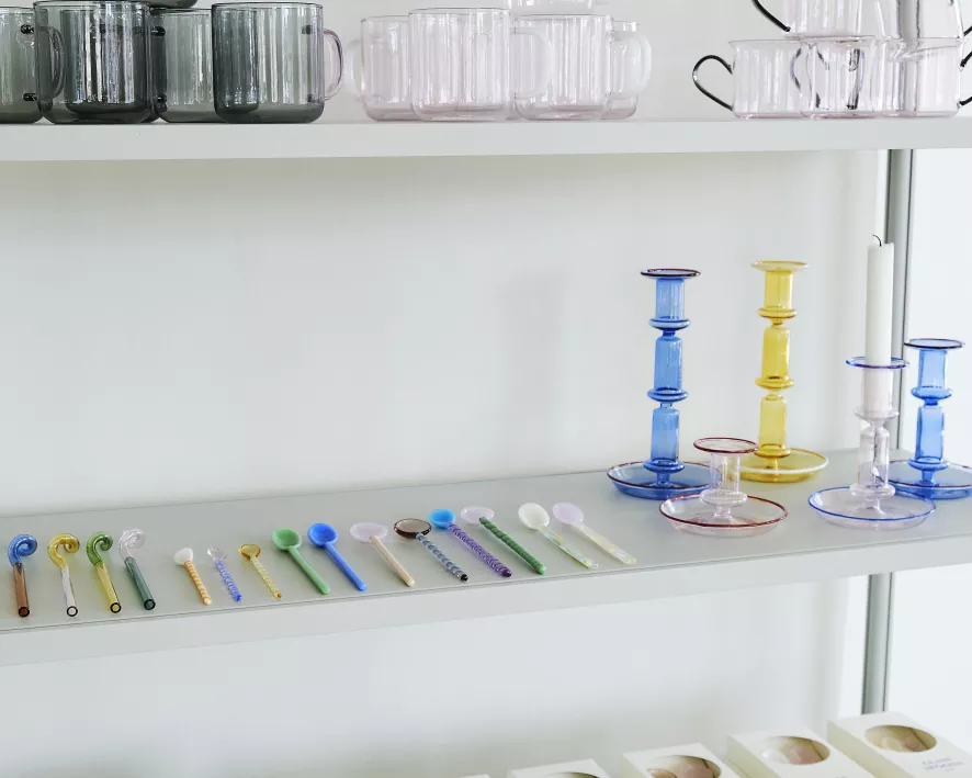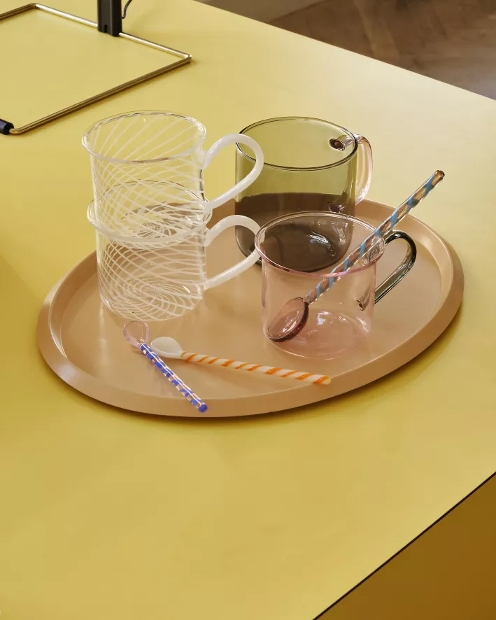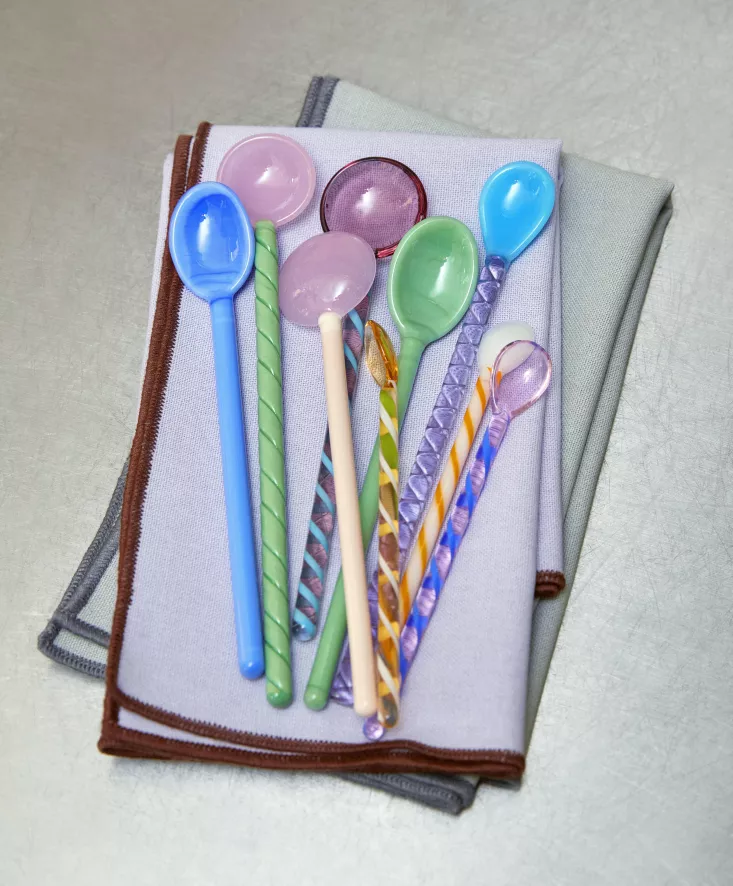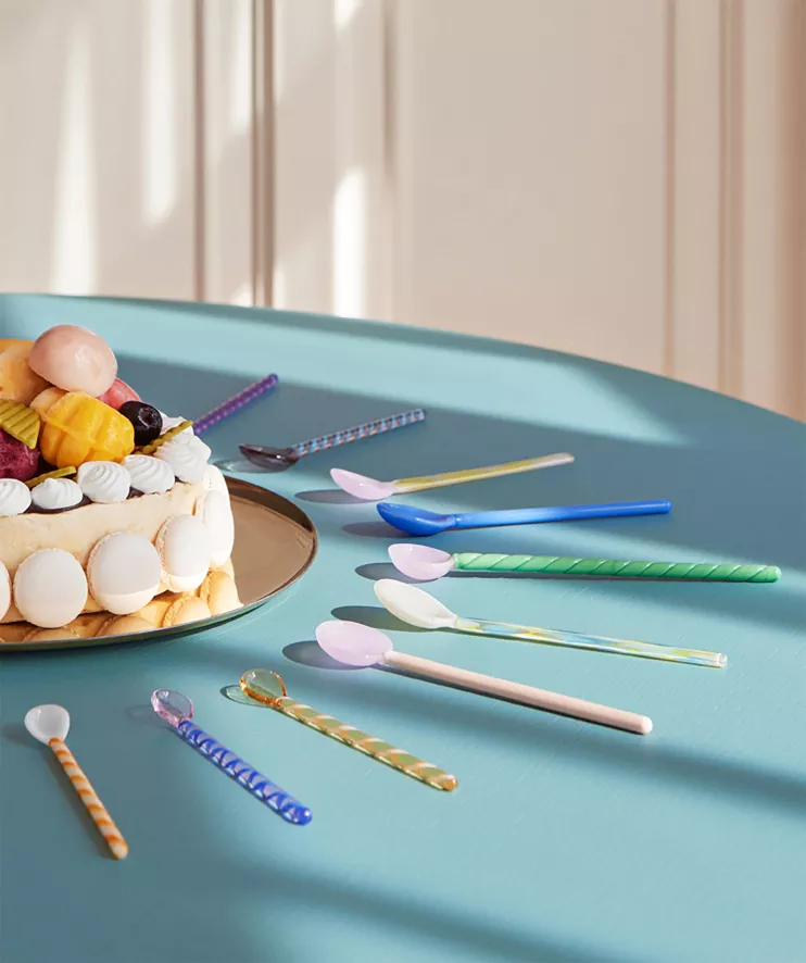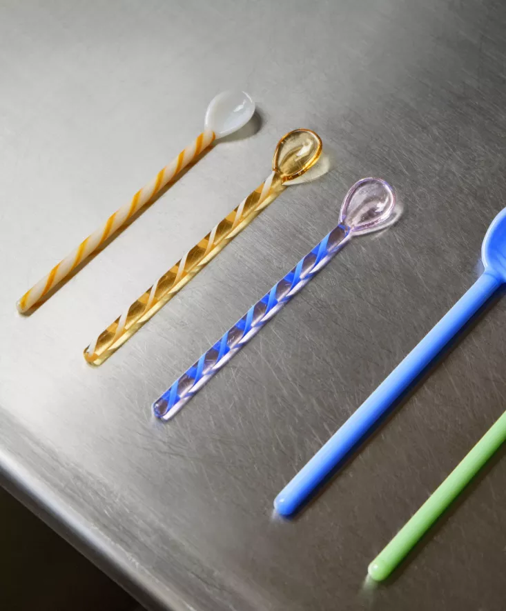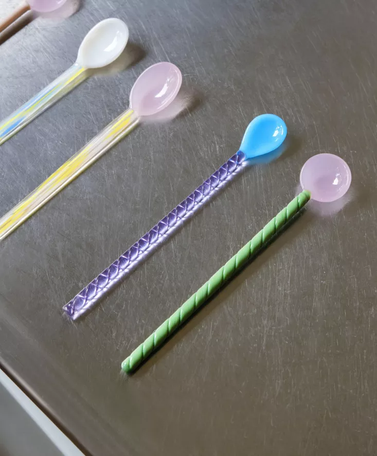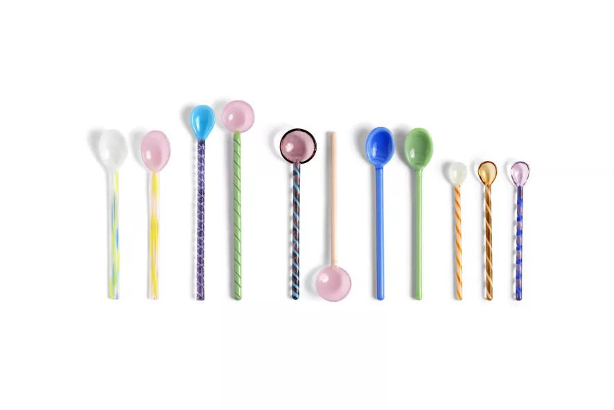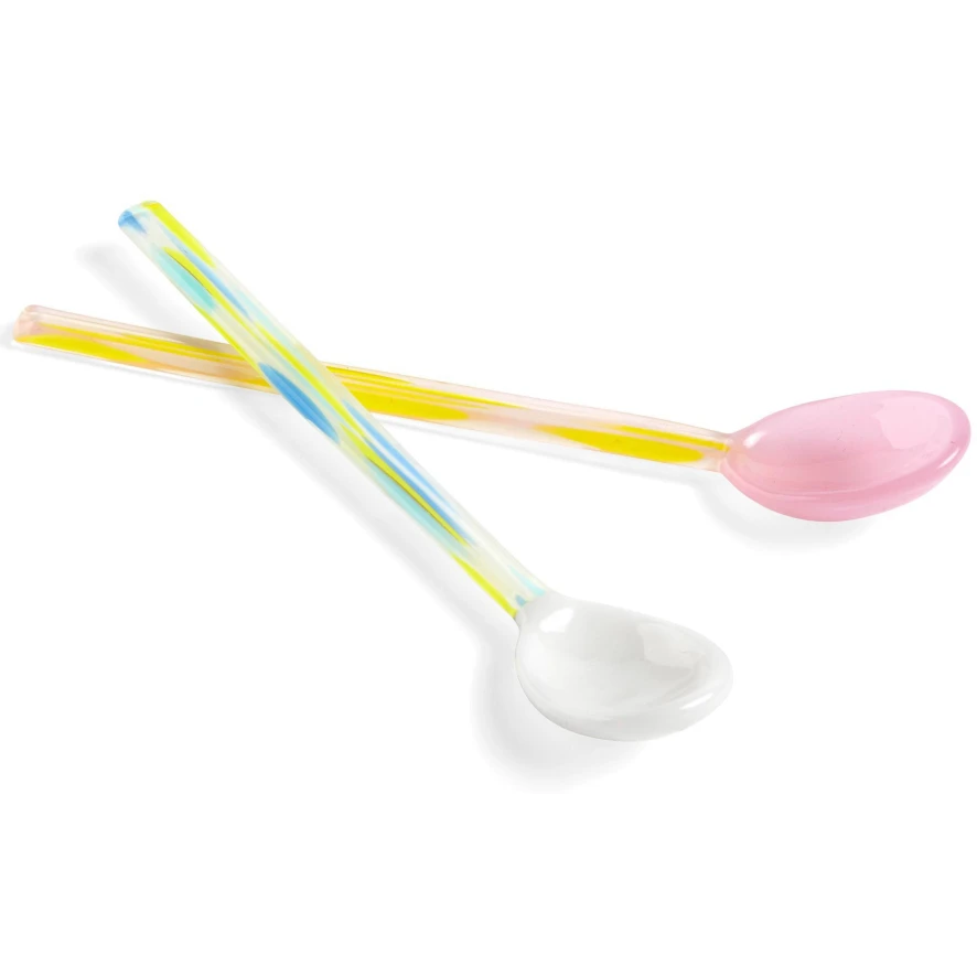 De Glass Spoons Flat set van 2 van HAY hebben een rechthoekige, platte steel en zijn in andere uitvoeringen verkrijgbaar.