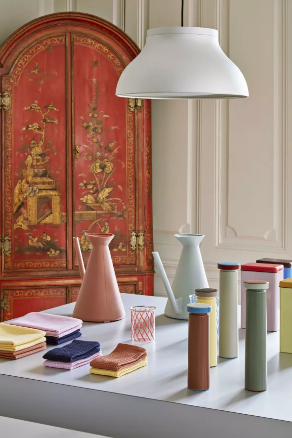 De Salt & Pepper M van Hay is ontworpen door George Sowden. Deze peper-en zoutmolen is gemaakt van roestvrijstaal en is voorzien van een keramische molen waarmee je de grootte van de korrel kunt bepalen. De Salt & Pepper M heeft een diameter van 6 centimeter en een hoogte van 20 centimeter. De Salt & Pepper M is verkrijgbaar in verschillende kleuren en in de maat L. Maat L heeft een diameter van 6 centimeter en een hoogte van 26 centimeter.