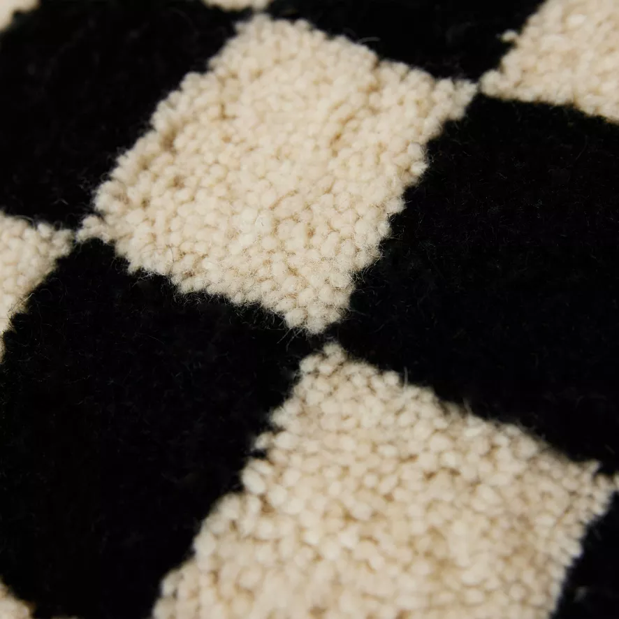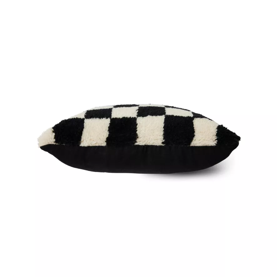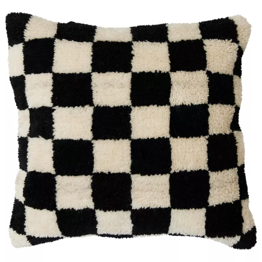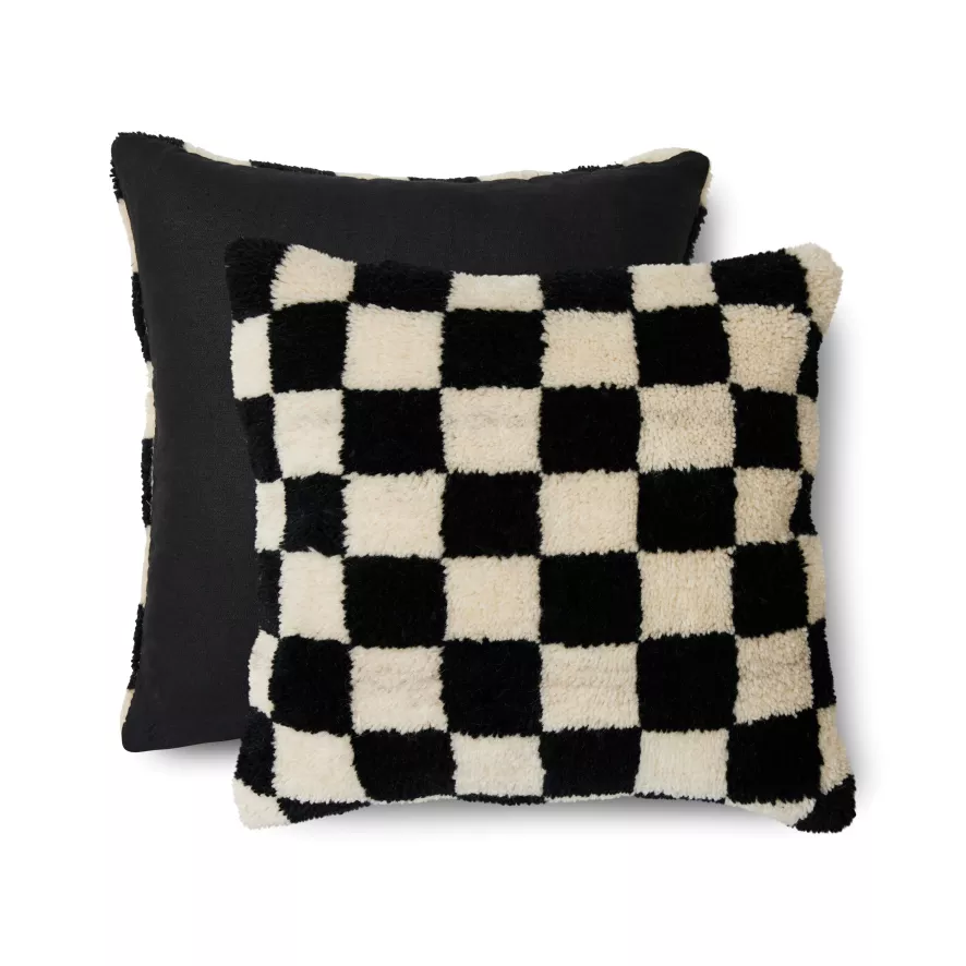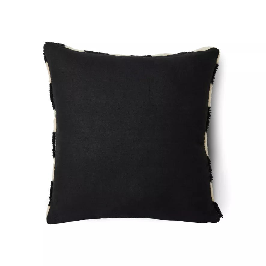 Het Black and White Statement Woolen kussen 50×50 van HKliving is voorzien van wit met zwart geblokt patroon. Het kussen heeft een lengte van 50 centimeter en een breedte van 50 centimeter. De voorkant van het kussen is gemaakt van 80% wol en 20% katoen, de achterkant is gemaakt van 100% linnen.