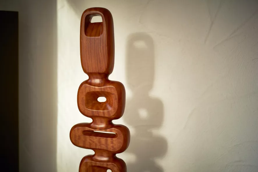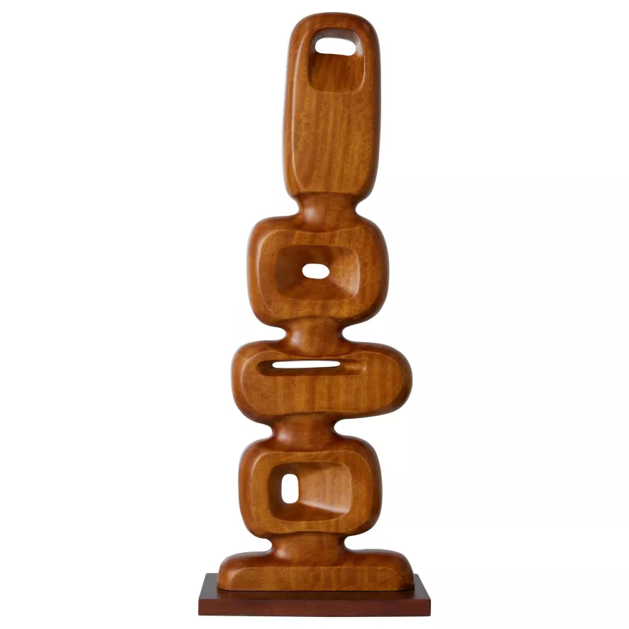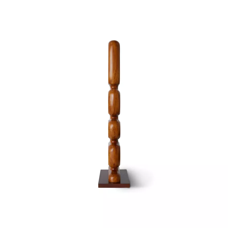 De Hand Carved Wooden Scupture woondecoratie van HKliving is 25 centimeter lang, 9 centimeter breed en 71 centimeter hoog. Het sculptuur is gemaakt van teakhout. Doordat het houten decoratiestuk met de hand gemaakt is, is ieder stuk uniek. Het object kan vrij in de ruimte staan want beide kanten zijn bewerkt.
