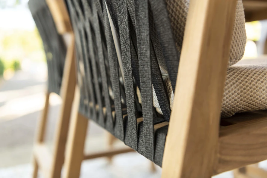 De Jardinico Flexx barset 170×80 + 4 barkrukken bestaat uit één Flexx bartafel 170×80 en vier Flexx barkrukken. De bartafel heeft een lengte van 170 centimeter, een breedte van 82,5 centimeter en een hoogte van 105 centimeter. Deze tafel is gemaakt van teakhout en weegt 24 kilogram. De vier barkrukken hebben ieder een breedte van 52,5 centimeter, een diepte van 74,9 centimeter en een hoogte van 104,5 centimeter. De zithoogte van de barkrukken bedraagt 76 centimeter en de zitdiepte bedraagt 40 centimeter. Deze barkrukken zijn gemaakt van teakhout en zijn voorzien van zitkussens van all-weather foam, geavanceerd schuim met hoge prestaties dat speciaal voor buitengebruik ontwikkeld is. De zitkussens zijn afgewerkt met acrylstof. De barkrukken zijn niet stapelbaar. De Flexx barset 170×80 + 4 barkrukken van Jardinico is er ook in een lagere uitvoering, kijk daarvoor bij de Flexx Counter barset.