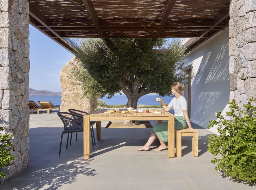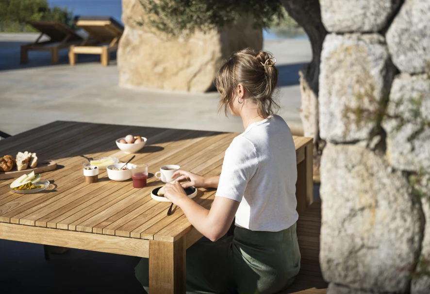 De Tecca tuintafel 160×160 van Jardinico heeft een lengte van 160 centimeter, een breedte van 160 centimeter en een hoogte van 75 centimeter. De tuintafel is volledig gemaakt van teakhout. Je kunt ervoor kiezen de Tecca tuintafel te behandelen met een speciale olie, of juist onbehandeld te laten.