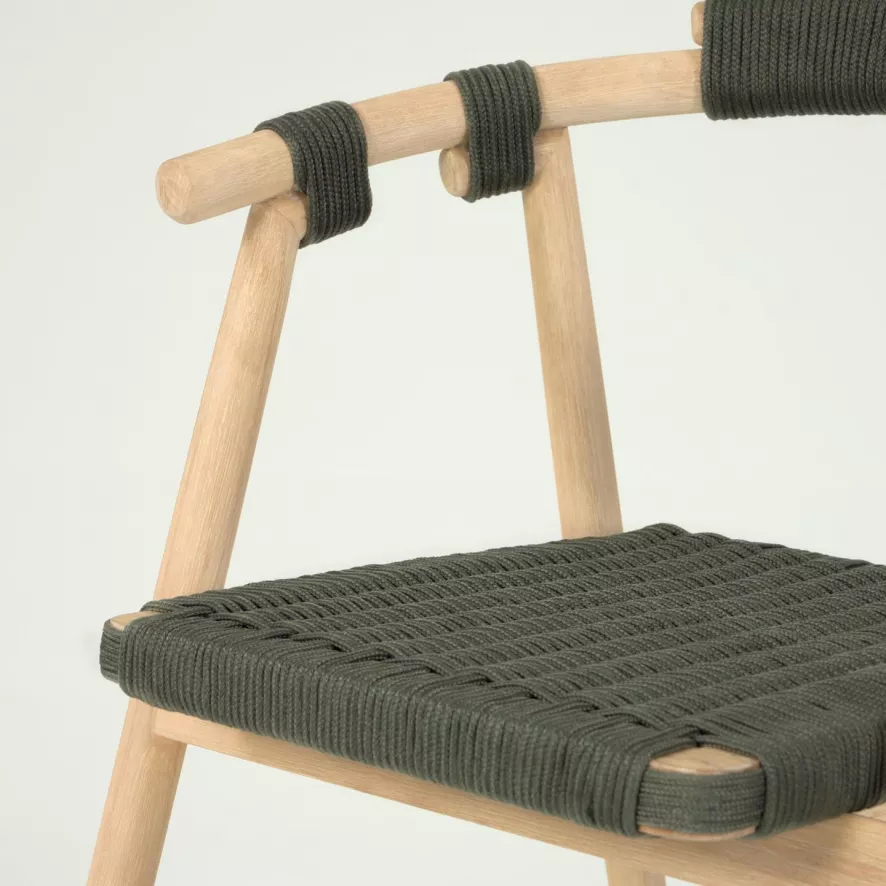De Majela stoel van Kave Home heeft een breedte van 56 centimeter, een diepte van 51 centimeter en een hoogte van 77 centimeter. De stoel heeft een zithoogte van 45 centimeter, een zitdiepte van 44 centimeter en een zitbreedte van 40 centimeter. De rugleuning van de stoel heeft een breedte van 58 centimeter en een hoogte van 7 centimeter en loopt over in twee armleuningen. De Majela stoel is gemaakt van FSC-gecertificeerd, massief eucalyptushout en kent een eikenhouten afwerking. De rugleuning, armleggers en de zitting zijn gemaakt van met de hand gevlochten touwen. De stoel heeft een gewicht van 5,6 kilogram en heeft een maximaal draaggewicht van 130 kilogram. De Majela stoel van Kave Home is stapelbaar en is in verschillende uitvoeringen verkrijgbaar.