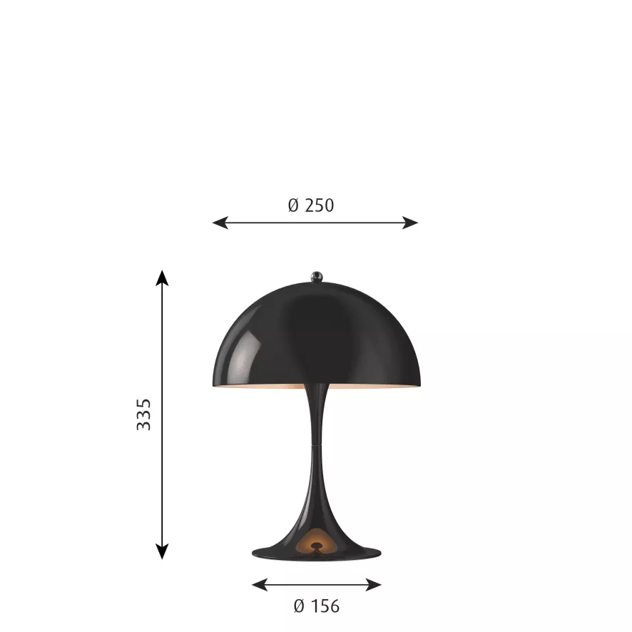 De Panthella Mini tafellamp van Louis Poulsen is de kleinste van de Panthella familie. De lamp heeft een diameter van 25 cm en een hoogte van 33,5 cm. De voet heeft een diameter van 15,6 centimeter. De Panthella Mini tafellamp is gemaakt van opaalacrylaat of gepoedercoat aluminium. De lamp is dimbaar via de schakelaar op het snoer. Hierbij kun je het gewenste lichtniveau kiezen tussen 15 en 100%. Dankzij de timerfunctie gaat de lamp na een bepaalde tijd automatisch uit. De Panthella Mini tafellamp is verkrijgbaar in verschillende kleuren. In de Panthella serie van Louis Poulsen vind je daarnaast diverse varianten van deze lamp.