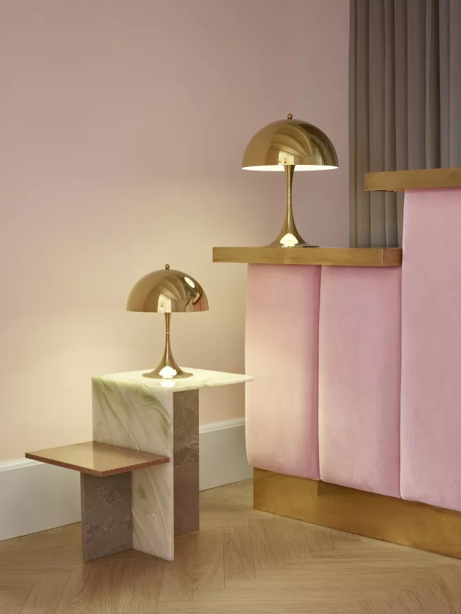 De Louis Poulsen Panthella Mini tafellamp LED is ontworpen door Verner Panton.