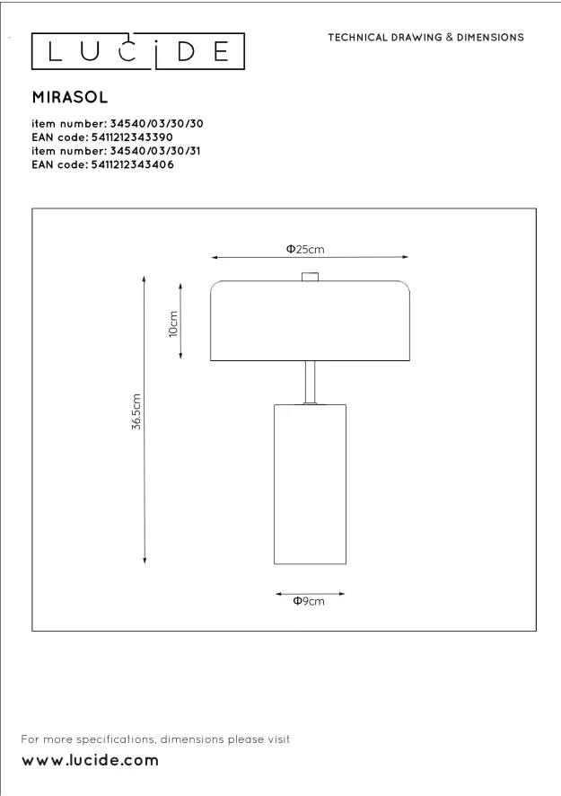 Dit is de Mirasol tafellamp van Lucide. De tafellamp is vervaardigd uit hoogwaardig metaal en marmer. De lamp heeft een hoogte van 30 centimeter, een breedte van 25 centimeter en een lengte van 25 centimeter. Het snoer is 180 centimeter lang. Er worden drie LED lichtbronnen met een G9 fitting geadviseerd voor in de lamp, allemaal met een maximaal wattage van 7. De lamp is dimbaar via de dimmer op het snoer.