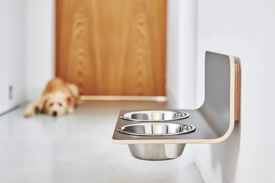De Acro hondenvoerbak wand small/medium van MiaCara is 35,2 centimeter lang, 21,7 centimeter breed en 15 centimeter hoog. De twee roestvrijstalen kommen hebben elk een inhoud van 0,4 liter en hebben een binnendiameter van 12 centimeter. De Arco hondenvoerbak wand small/medium is gemaakt van gebogen multiplex met een coating van hogedruklaminaat en kan afgenomen worden met een zacht doekje. De wand is verkrijgbaar in twee kleuren. De twee kommen zijn gemaakt van geborsteld roestvrijstaal en zijn geschikt voor de vaatwasser.