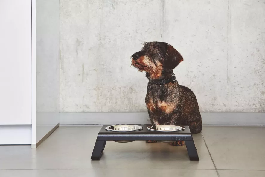 De Desco hondenvoerbak van MiaCara is een ontwerp van Mathias De Ferm. De Desco hondenvoerbak small is 40 centimeter lang, 19 centimeter breed en 10 centimeter hoog. Door siliconen aan de onderkant verschuift de bak niet maar blijft hij altijd op zijn plek. Het frame van het ontwerp is verkrijgbaar in twee verschillende materialen: multiplex of aluminium. Het aluminium is gepoedercoat in verschillende kleuren. Bij de multiplex versie heb je keuze uit walnoot of essenhout, in verschillende coatings. De bakken zijn van roestvrijstaal en hebben een inhoud van 0,4 liter en een diameter van 12 centimeter en kunnen gewoon in de vaatwasser.