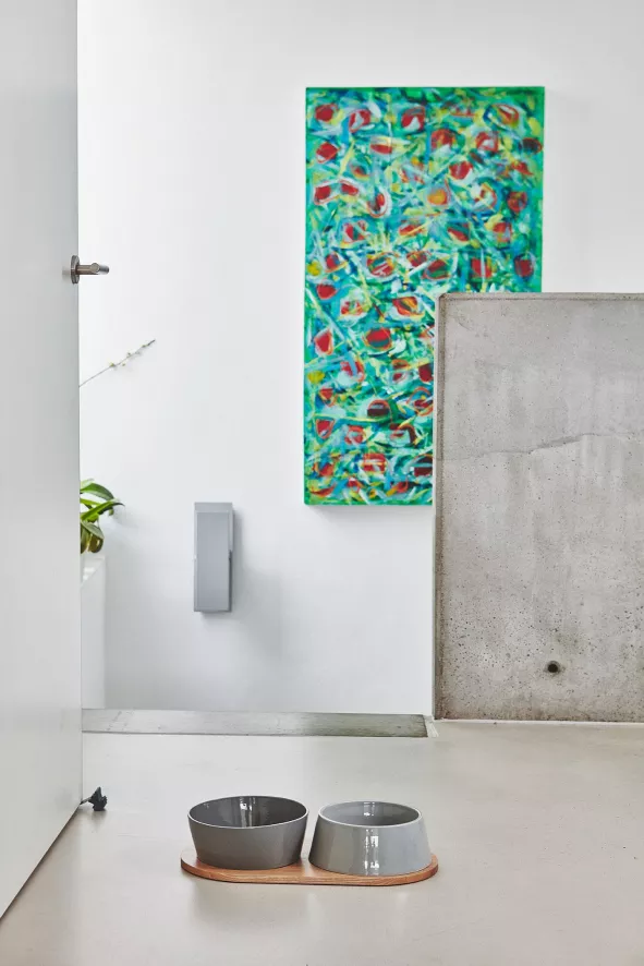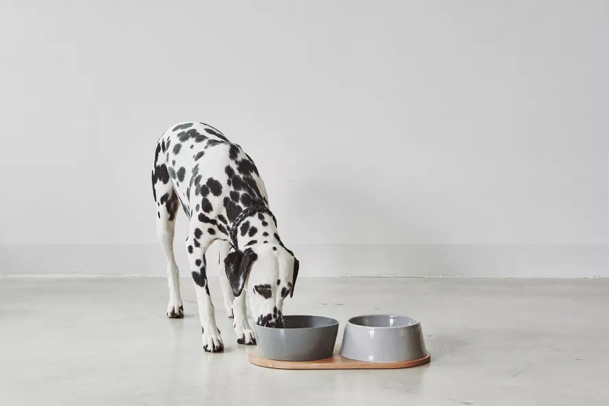 De Doppio hondenvoerbak is ontworpen door Hans Thyge & Co. De Doppio hondenvoerbak small/medium van MiaCara is 6,5 centimeter hoog, heeft een diameter van 17,4 en heeft een capaciteit van 0,6/0,8 liter. De bakken zijn geschikt voor de vaatwasser of kunnen met de hand schoongemaakt worden. Beide bakken zijn gemaakt van porselein en zijn in verschillende kleuren verkrijgbaar. De plank is 38 centimeter lang, 20 centimeter breed en 1,2 centimeter hoog en is gemaakt van eikenhout. De Doppio hondenvoerbak is er ook in een maatje groter.