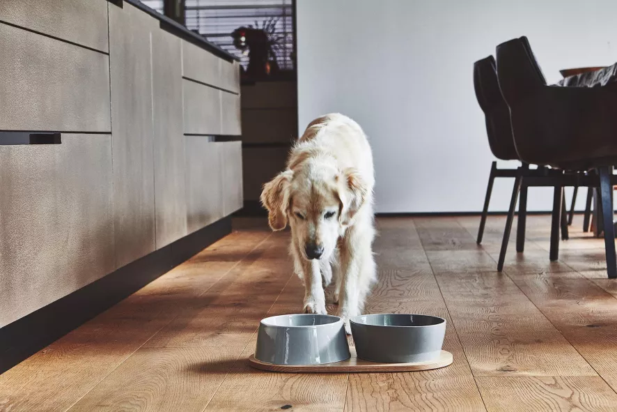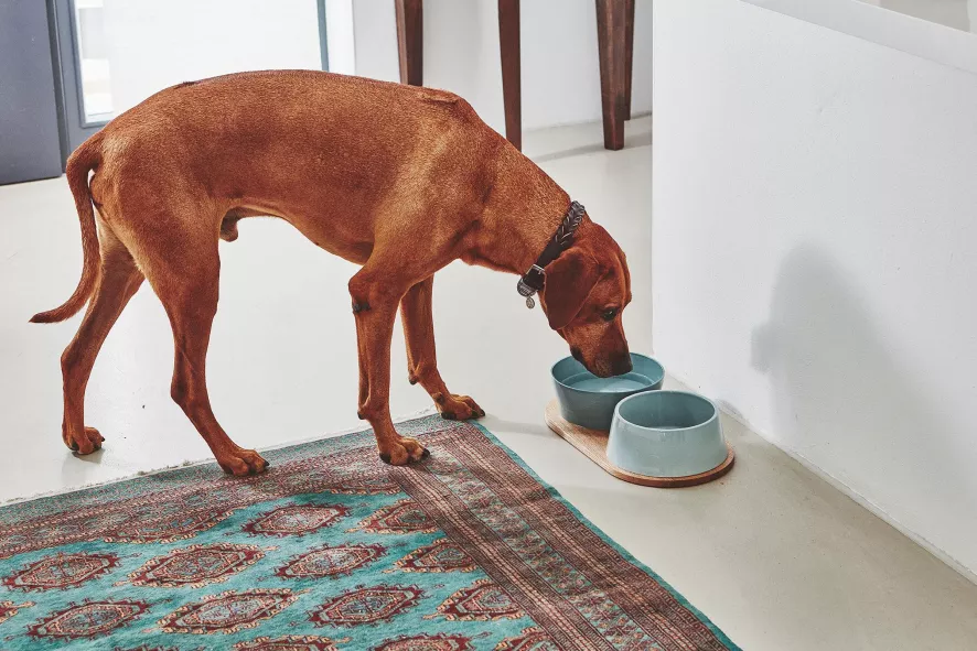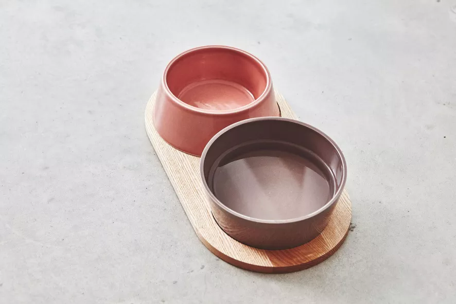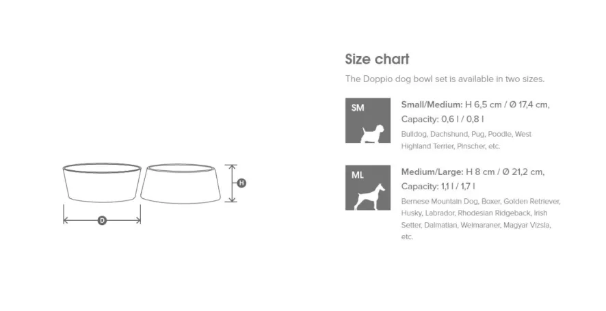 De Doppio hondenvoerbak is ontworpen door Hans Thyge & Co. De Doppio hondenvoerbak small/medium van MiaCara is 6,5 centimeter hoog, heeft een diameter van 17,4 en heeft een capaciteit van 0,6/0,8 liter. De bakken zijn geschikt voor de vaatwasser of kunnen met de hand schoongemaakt worden. Beide bakken zijn gemaakt van porselein en zijn in verschillende kleuren verkrijgbaar. De plank is 38 centimeter lang, 20 centimeter breed en 1,2 centimeter hoog en is gemaakt van eikenhout. De Doppio hondenvoerbak is er ook in een maatje groter.