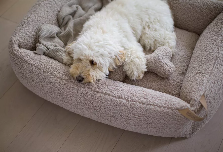 De Senso hondenmand large van MiaCara is 120 centimeter lang, 90 centimeter breed en 30 centimeter hoog. De mand heeft een schuimvulling gemaakt van 100% polyurethaan. Het kussen aan de binnenkant is gemaakt van 60% katoen en 40% polyester. De bekleding is gemaakt van zachte bouclé stof. De Senso hondenmand is verkrijgbaar in verschillende kleuren. Het kussen is te wassen met mild wasmiddel op een maximale temperatuur van 60 graden. Het matras en de bekleding zijn te wassen op een maximale temperatuur van 30 graden.