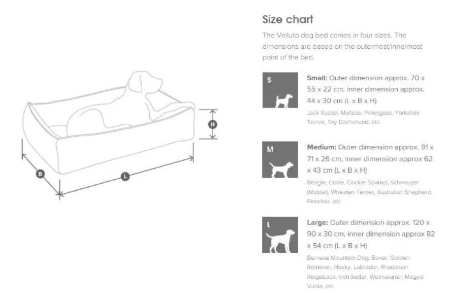 De Velluto hondenmand small van MiaCara heeft een lengte van 70 centimeter, een breedte van 55 centimeter en een hoogte van 22 centimeter. Deze hondenmand heeft een afneembare en wasbare hoes van polyester die tot een temperatuur van 40 graden Celsius in de wasmachine gewassen mag worden. Gebruik hiervoor bij voorkeur een mild wasmiddel. De hoes dient na het wassen aan de lucht gedroogd te worden. Het binnen kussen heeft een hoes die voor 60% uit katoen en voor 40% uit polyester bestaat. Deze hoes mag in de wasmachine tot een temperatuur van maximaal 60 graden Celsius, met de fijne was, gewassen worden. Ook hier dien je een mild wasmiddel te gebruiken. Centrifugeer de hoes goed en laat deze aan de lucht drogen. De vulling van de hondenmand is gemaakt van stabiel, duurzaam, hypoallergeen en elastisch polyurethaanschuim dat op een temperatuur van 30 graden Celsius, met de fijne was, in de wasmachine gewassen mag worden. Centrifugeer het goed en laat deze aan de lucht drogen. Het is mogelijk om de binnen hoes en het matras in de droogtrommel te laten drogen maar let hierbij op dat de temperatuur niet boven de 60 graden Celsius uitkomt. Dit hondenkussen is geschikt voor Jack Russels, Maltezers, Yorkshire Terriërs, Buldoggen, Dashonden, Mopshonden, Poedels en andere kleine hondenrassen. De Velluto hondenmand small van MiaCara is in verschillende kleuren en formaten verkrijgbaar.