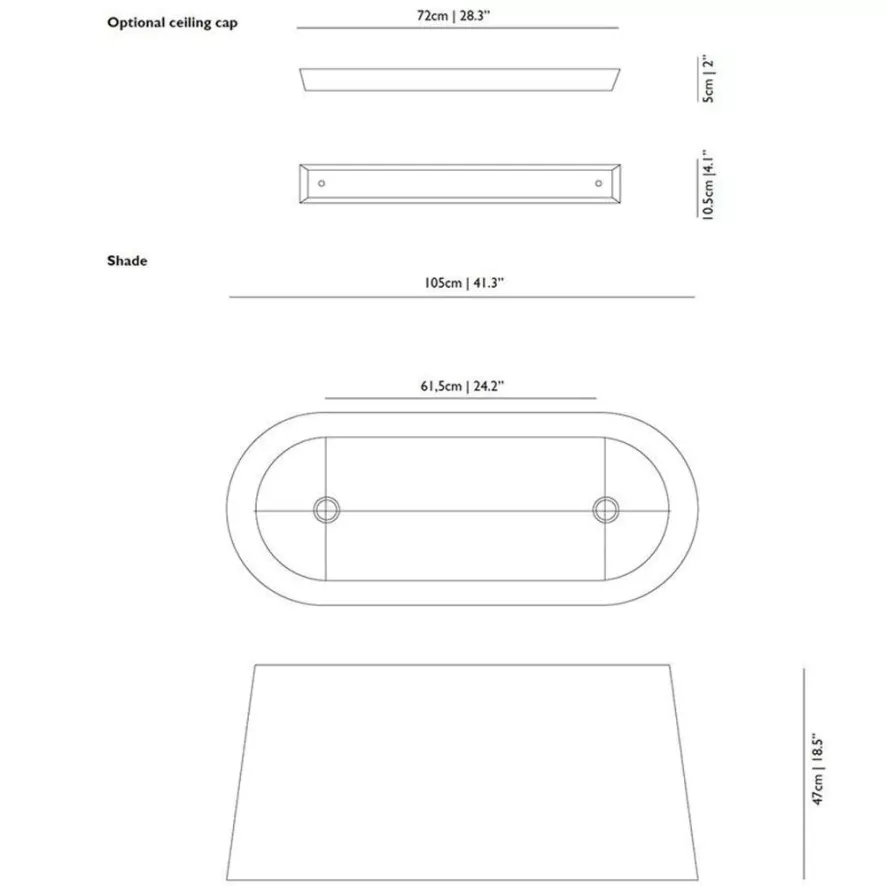De Oval hanglamp van Moooi heeft een breedte van 105 centimeter, een diepte van 43 centimeter en een hoogte van 47 centimeter. De lamp is gemaakt van katoen. De lamp wordt zonder lichtbron geleverd. De aanbevolen lichtbron is een lichtbron met E27 fitting van maximaal 10 Watt. De lamp is dimbaar via een wanddimmer. Aan de lamp zit een snoer van 400 centimeter.