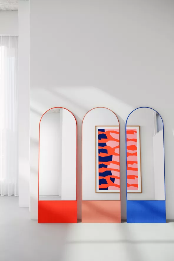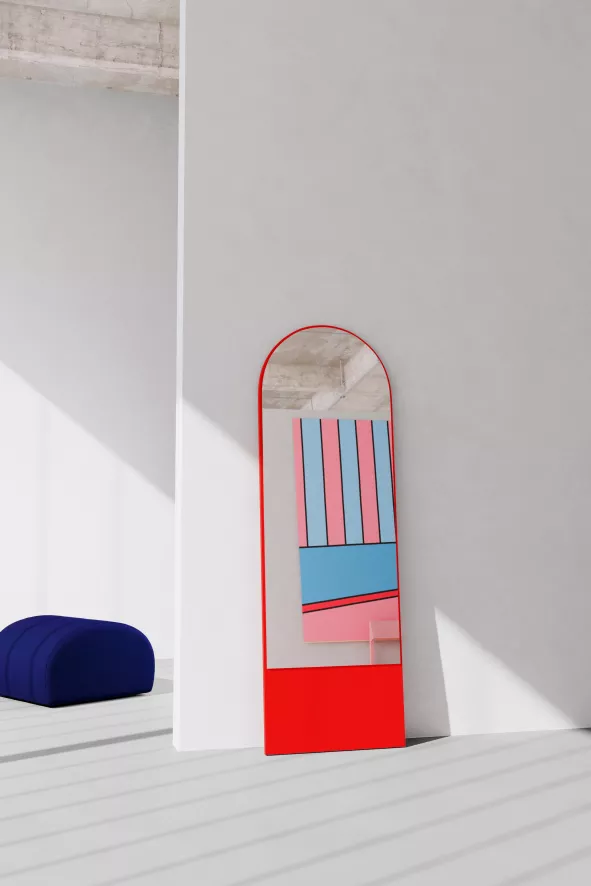 De Friedrich 21 spiegel van Objekte Unserer Tage heeft een breedte van 60 centimeter, een diepte van 3 centimeter en een hoogte van 185 centimeter. De spiegel heeft een basis van gelakt essenhout en een spiegel van spiegelglas. De Friedrich 21 spiegel van Objekte Unserer Tage is in verschillende kleuren verkrijgbaar.