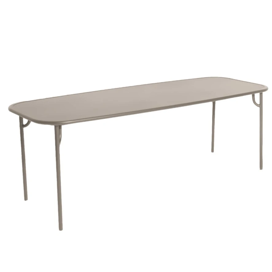 De Week-end tuintafel 220×85 met dicht blad van Petite Friture is ontworpen door Studio Brichet-Ziegler. De tafel is 220 centimeter lang, 85 centimeter breed en 75 centimeter hoog. De buitentafel is gemaakt van aluminium en is voorzien van een epoxy laklaag. De Week-end tuintafel is geschikt voor zowel binnen-als buitengebruik en is verkrijgbaar in verschillende kleuren.