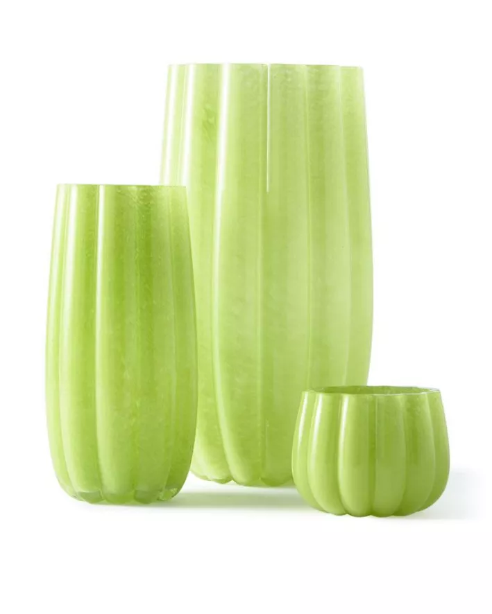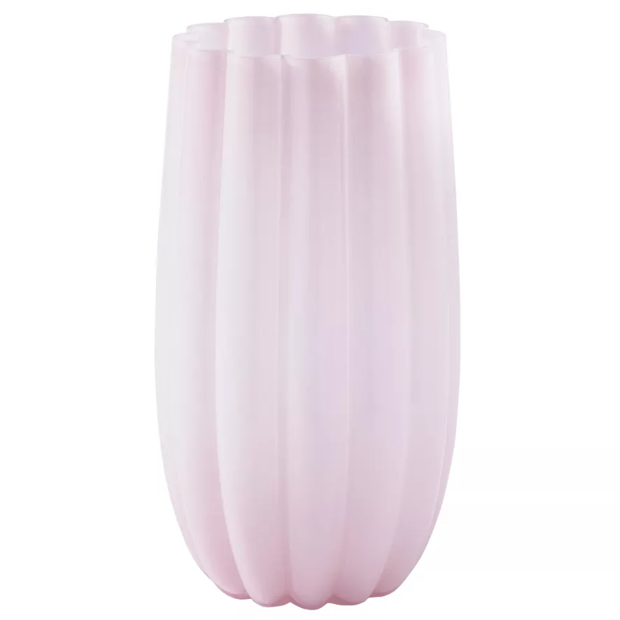De Melon vaas L van POLSPOTTEN heeft een diameter van 20,5 centimeter en een hoogte van 38,1 centimeter. De vaas is gemaakt van glas en is verkrijgbaar in verschillende kleuren.