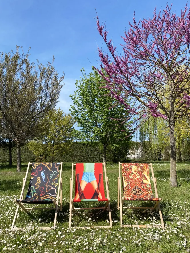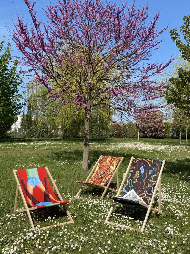 De Deck Chair ligstoel van Seletti is ontworpen door designstudio Toiletpaper. De stoel heeft wanneer deze dicht is een hoogte van 122 centimeter, een breedte van 58 centimeter en een diepte van 4 centimeter. Wanneer de stoel opengeklapt is, heeft deze een hoogte van 87 centimeter, een breedte van 58 centimeter en een diepte van 81 centimeter. Het frame van de stoel is gemaakt van hout. De stoel is tegen UV straling beschermd, waardoor de print mooi blijft. De stoel is in verschillende variaties verkrijgbaar.