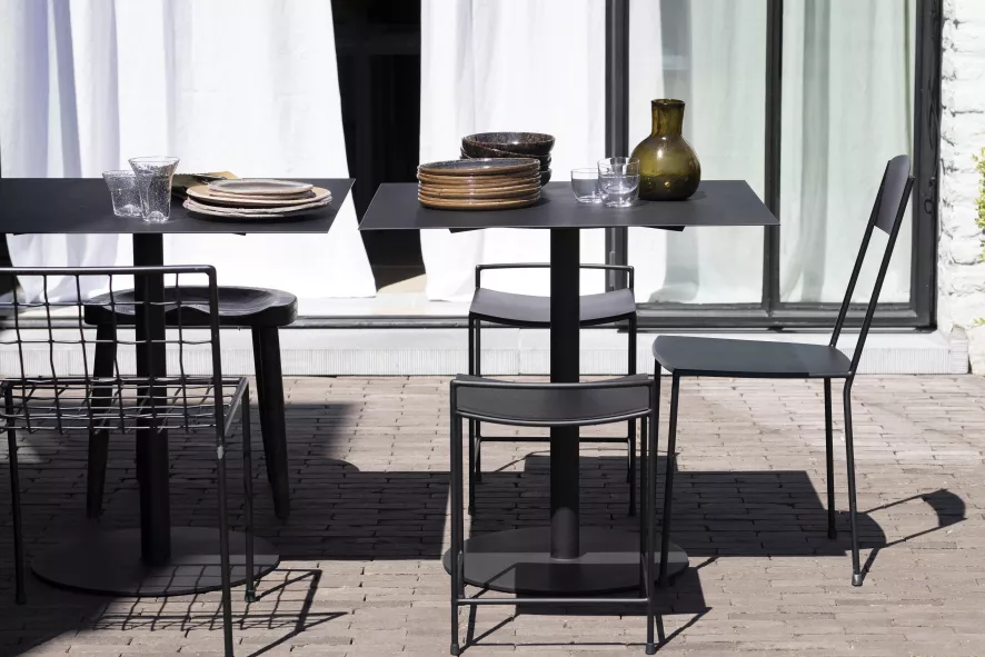 De Bistro tafel 80×80, ontworpen door Bea Mombaers, van Serax heeft een lengte van 80 centimeter en een breedte van 80 centimeter. De tafel is 74,4 centimeter hoog. Bistro is gemaakt van staal, afgewerkt met een zwarte poedercoating. De tuintafel weegt 30 kilogram.