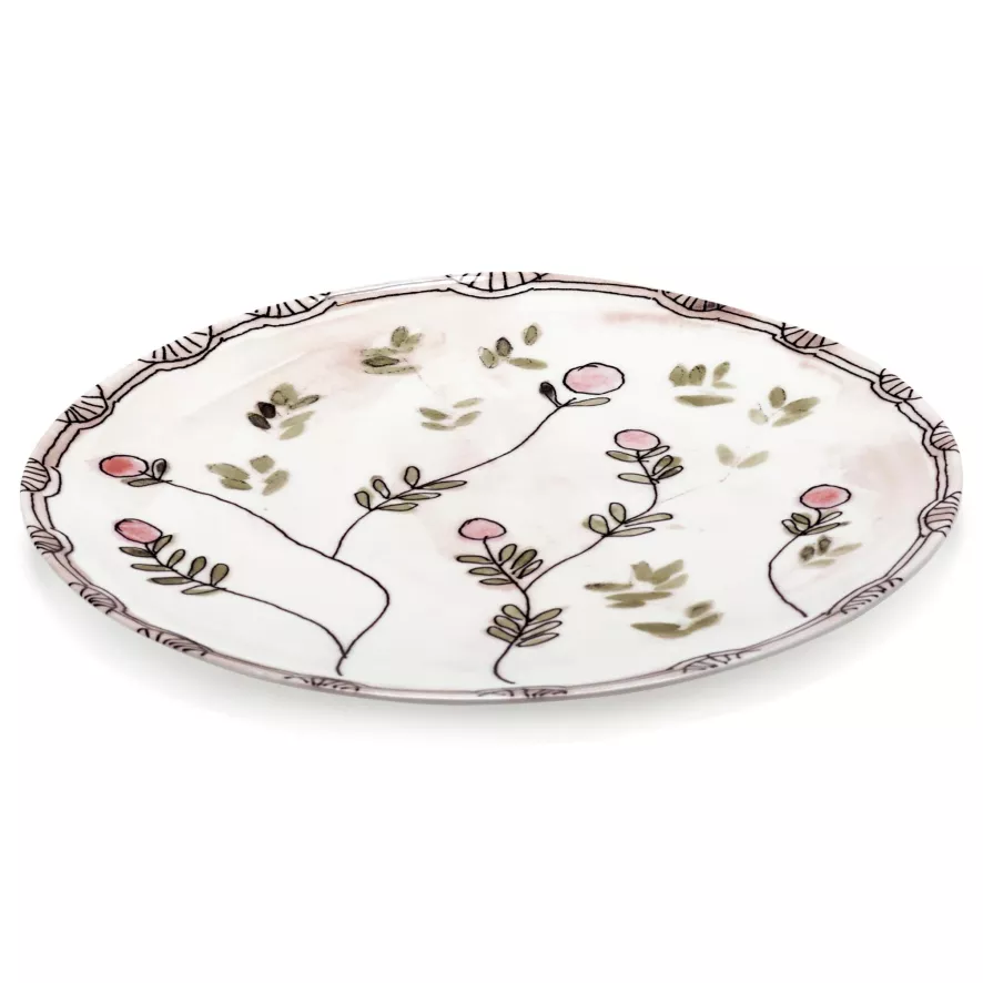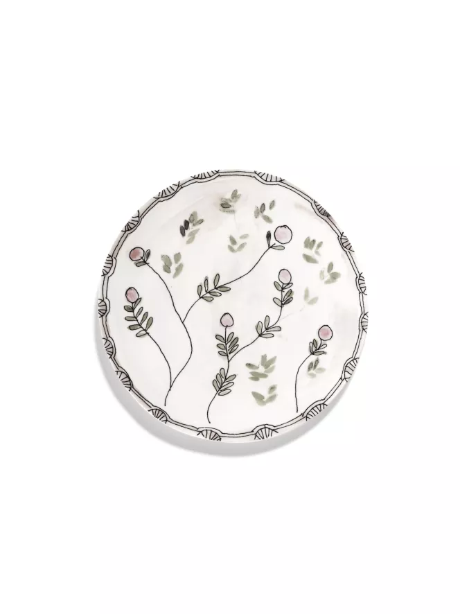 Het Serax Midnight Flowers by Marni Mirtillo Nude dinerbord Ø24 is ontworpen door Francesco Risso. Het Midnight Flowers by Marni Mirtillo Nude dinerbord Ø24 van Serax heeft een diameter van 24 centimeter en een hoogte van 1,3 centimeter. Het bord is gemaakt van porselein en is voorzien van een botanische tekening die met de hand geïllustreerd is. Het bord is afgewerkt met een beschermende glazuurlaag, heeft een gewicht van 0,48 kilogram en wordt per twee stuks geleverd. Het Midnight Flowers by Marni Mirtillo Nude dinerbord Ø24 van Serax komt uit de gelijknamige Midnight Flowers by Marni collectie en is in verschillende uitvoeringen verkrijgbaar.