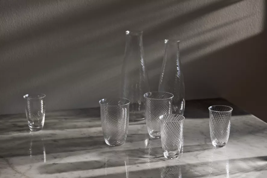 De Collect SC62 karaf 0.8L van &Tradition heeft een diameter van 9 centimeter en een hoogte van 25 centimeter. De karaf is gemaakt van mond geblazen, helder glas en heeft een draaikolkmotief dat met de hand is aangebracht. De karaf is vaatwasser bestendig.