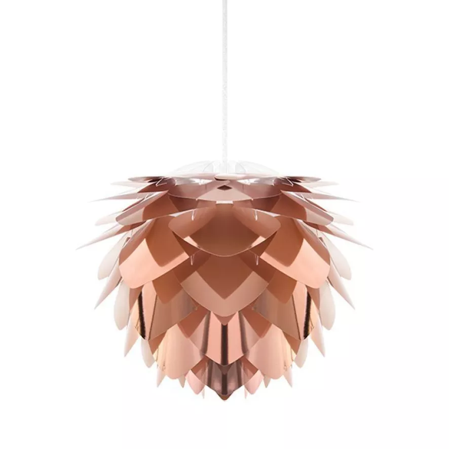 De Sylvia mini hanglamp met wit snoer van Umage heeft een hoogte van 27 centimeter en een diameter van 34 centimeter. De lamp wordt geleverd met een wit snoer. De Sylvia hanglamp is verkrijgbaar in de kleuren: wit, koper of staal. Het materiaal van de lamp is polypropeen. De lamp heeft een E27 fitting, de lichtbron is exclusief. De Sylvia mini lamp is ook als vloer- en tafellamp verkrijgbaar. Umage doneert voor iedere verkochte kunststof lamp 5% van de omzet aan het opruimen van de zee en verpakt de verlichting in herbruikbare giftboxes.
