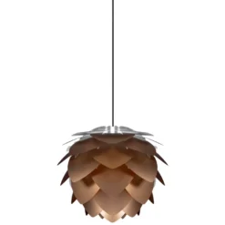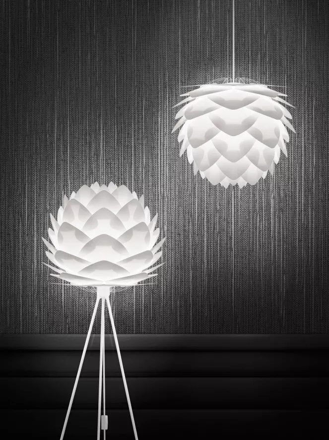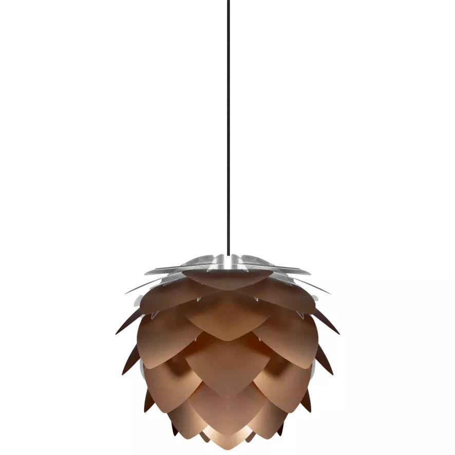 De Sylvia mini hanglamp met zwart snoer van Umage heeft een hoogte van 27 centimeter en een diameter van 34 centimeter. De lamp wordt geleverd met een zwart snoer. De Sylvia mini hanglamp is verkrijgbaar in de kleuren: wit, koper of staal. Het materiaal van de lamp is polypropeen. De lamp heeft een E27 fitting, de lichtbron is exclusief. De Sylvia mini lamp is ook als vloer- en tafellamp verkrijgbaar. Umage doneert voor iedere verkochte kunststof lamp 5% van de omzet aan het opruimen van de zee en verpakt de verlichting in herbruikbare giftboxes.