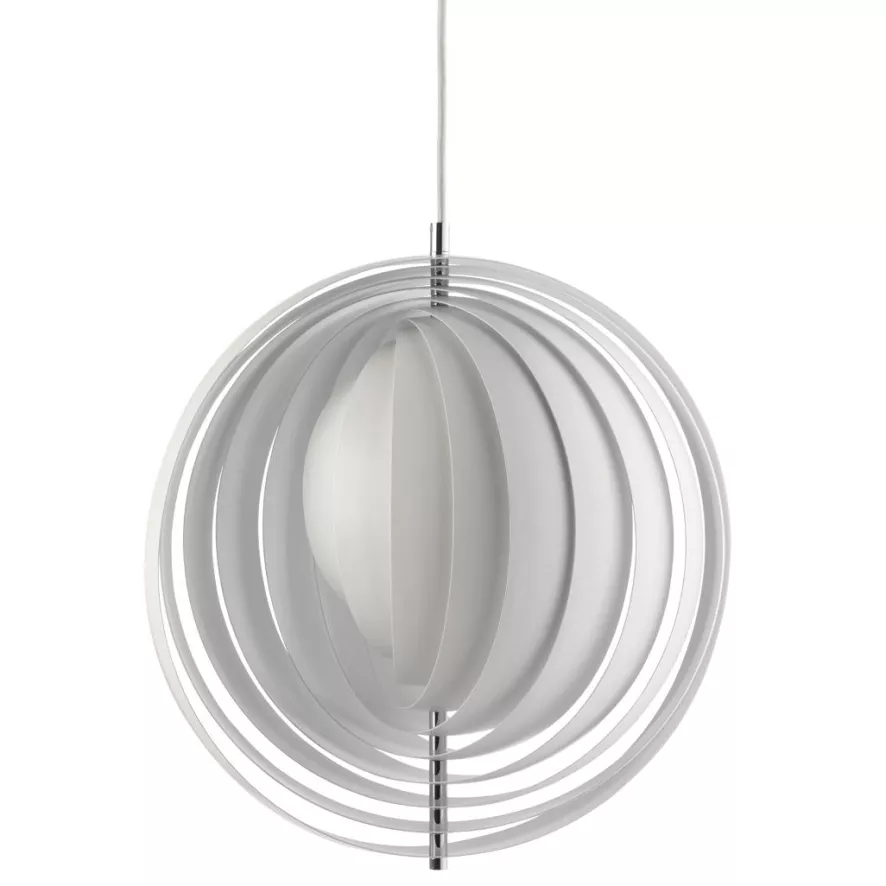De hanglamp is gemaakt van wit gelakt metaal. De lamp heeft een diameter van 44.5 centimeter. Het snoer aan de lamp is 250 centimeter lang. In de lamp zit een E27 fitting, geschikt voor een lichtbron met een maximaal wattage van 60. Deze lichtbron wordt niet meegeleverd. In de Moon collectie zit ook een hanglamp in een kleinere maat.